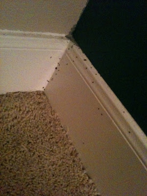 WOW! What a weekend! After a long three weeks spent in Austin, I returned to Dallas to empty my apartment. Apparently though, the new tenants had already moved in. There were about a million new residents-- a million tiny, brown, buggy residents. Yes, ants. These little critters had decided to invade Delilah's bin of dog food and trail off in a perfect assembly line through my entryway, into my bathroom, around the corner to the bedroom, behind my headboard and my dresser, under the door and into my closet, finally exiting through a small corner in the back of my walk-in. Needless to say, I was livid and terrified and disgusted all at once. A quick trip to Walgreen's and two cans of super-charged Raid later, not a single live ant remained. Unfortunately, my vacuum cleaner was broken, leaving me no way to suck up the dead insects. Instead, my apartment looked like a gruesome battlefield scattered with Formicidaen casualties.
