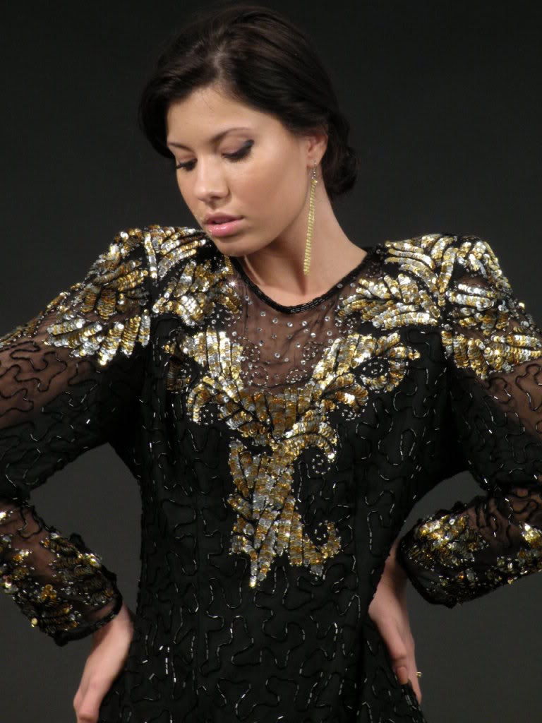 For the sequin dress I wanted to snip out those shoulder pads. I have shoulders as broad as a football player; I don't need the extra oomph. But for those of you with baby shoulders, go ahead and keep them in! It can look super haute couture to have the exaggerated angles that shoulder pads create. I also wanted to cut it off short. As it is, it might look a little potato-sacky. A little bit off the length would make the bagginess work. Since I didn't get to purchase these lovelies on Friday, I snooped around the internet a bit to discover any alternatives. I found two dresses on eBay that I am almost certain are the same dress that I tried on (unfortunately, at about $35 more each).
