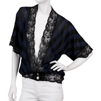 As it has been since I was a little girl, sleeping is probably one of my favorite "pastimes." When I move to a new place I obsess over the details of my bed and the ambience of my bedroom. I layer my plushy pillow-top mattress with 700 thread count sheets and a five-inch thick goose down feather bed, finishing off the delectable dream cloud with a fluffy eiderdown duvet and a mountain of silk satin encased pillows. Everything housed by those glossy, painted walls invites you to relax and lounge. So it would seem only fitting that I might try to take clothes intended for under the comforter and put them out on the sidewalk. Now I don't mean you should take to the streets in your Nick & Nora flannels. (Not to knock them, of course! Mine are pink with shoes all over...naturally.) Instead, I'm talking about something a little more intimate and feminine: the bed jacket. Bed jackets were popular in the 1930's and 1940's, used to cover a woman's upper body while she sat in bed. They are generally short, loose jackets of decadent materials and adornment, ideal for the most languorous of glamour queens. Add a little luxury to your basic jeans and tanks with one of these luscious options.