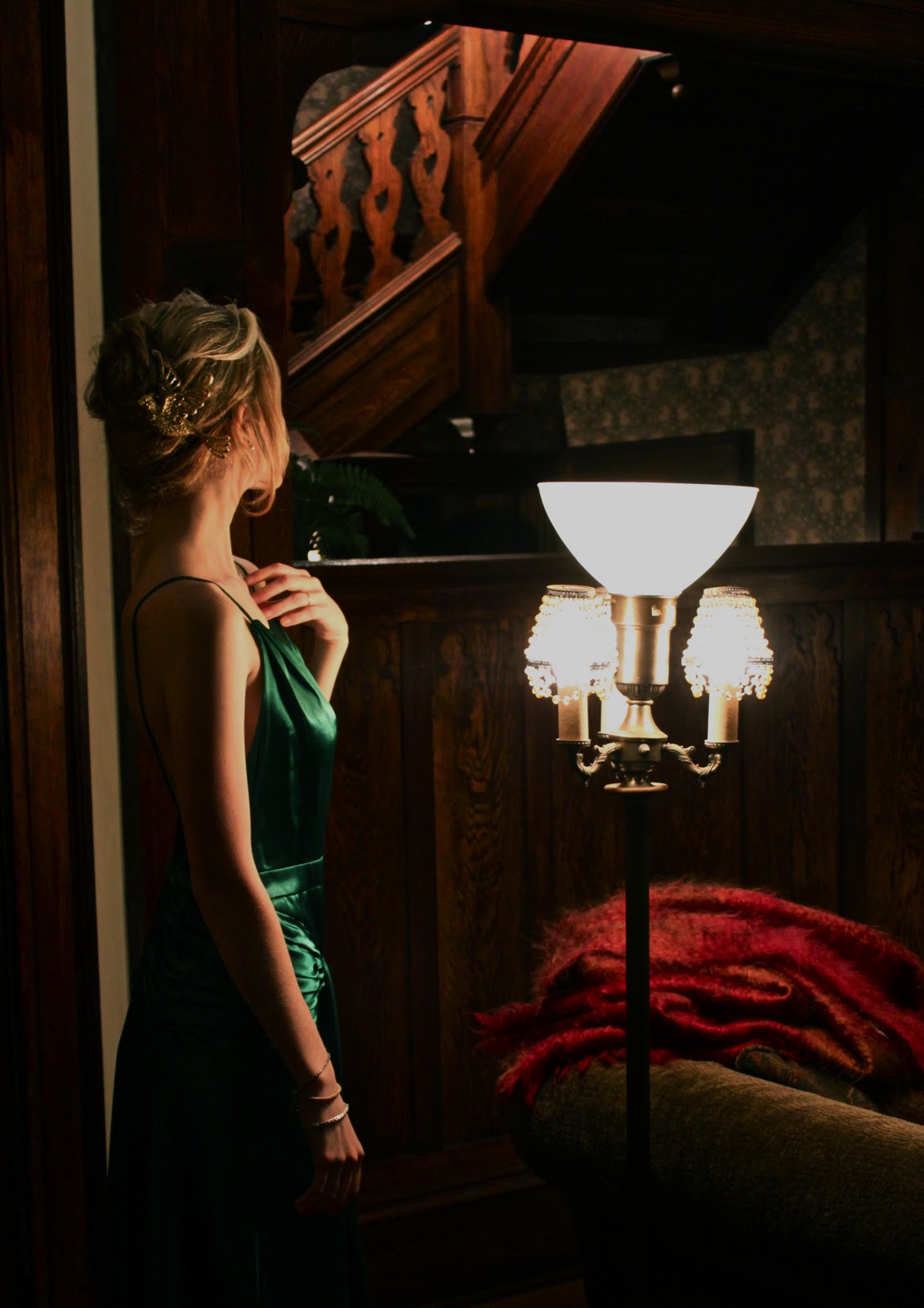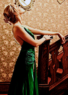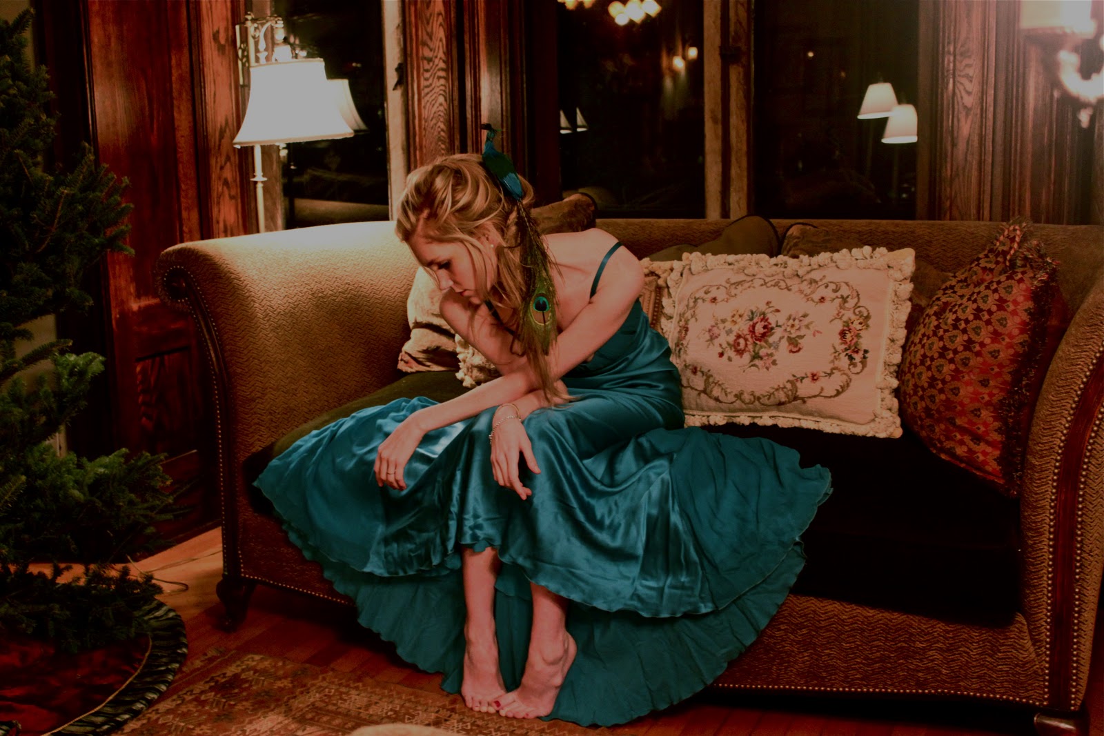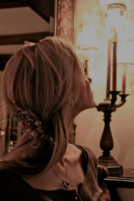 My adventures into the wonderland of dress-up and costumes always starts out so innocent... and it always ends up infinitely more involved. Such was the case last night. My mom has begun her annual holiday decorating craze. As she decked the windows in the kitchen with little glass ornaments, I picked up the pretty yellow star and told her I wanted to wear it in my hair. One thing led to another, and before I knew it she and I were conducting a full blown photo shoot. What began as a request for her to take a picture of the simple starred style rapidly progressed into various contortions of my hair, decorated with bits of holiday ornamentation I would spot around the house , and a messy slew of outfit changes. Somehow, from a sickening cloud of hairspray and abundant layers of silk satin gowns tossed haphazardly around my room, a spread of some cool photos emerged....