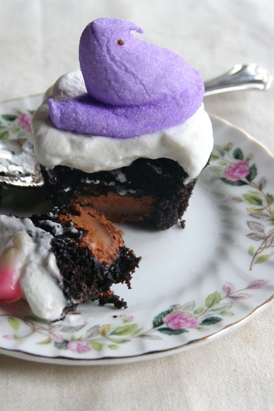Cadbury Creme Egg Stuffed Cupcakes with Peeps -- The Cookbook Chronicles